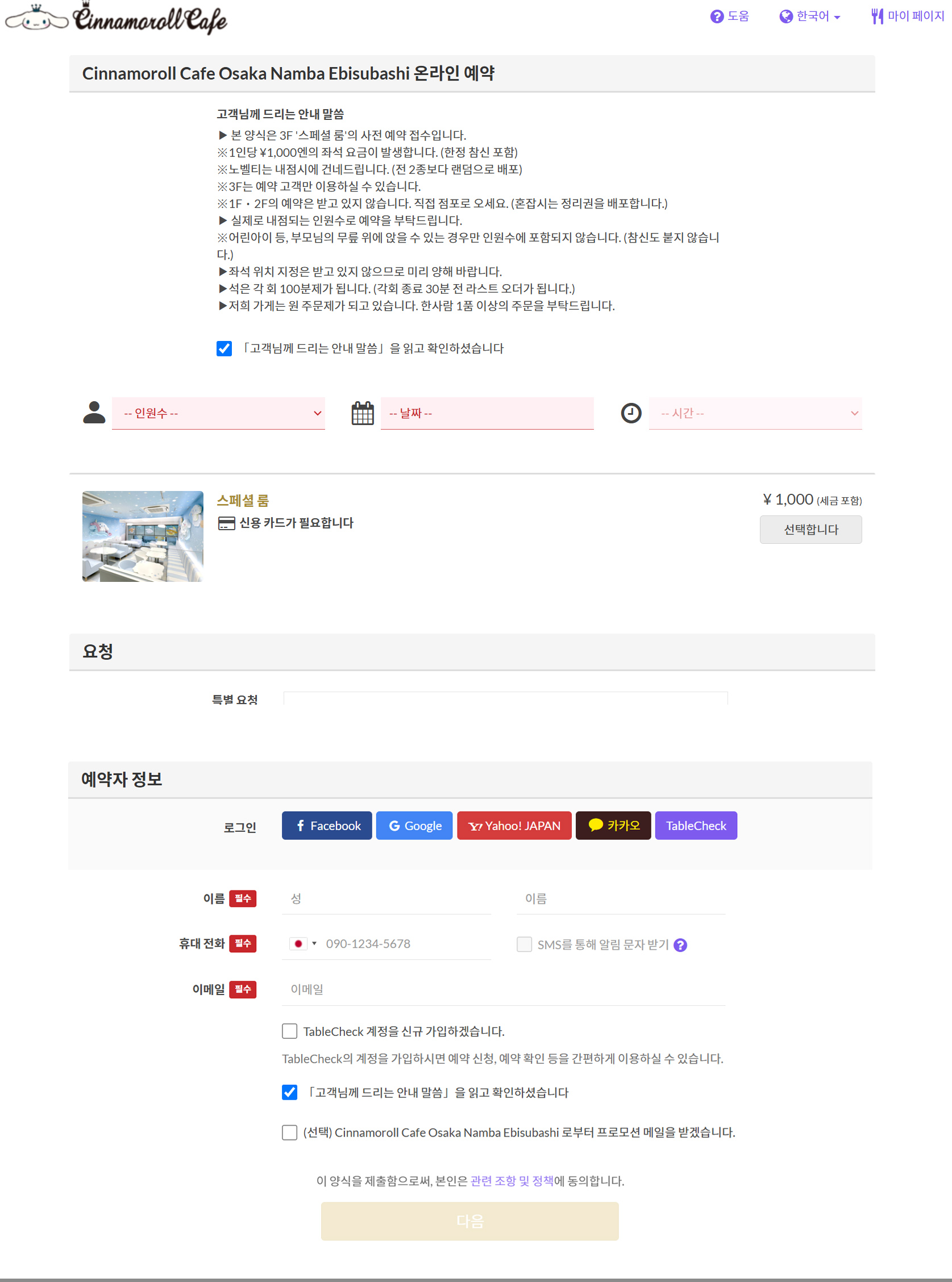 🎀 시나모롤 카페 스페셜 룸 예약 방법
